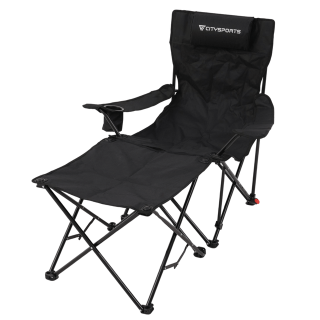 CITYSPORTS Folding Camping Recliner Chair with Detachable Footrest – Portable Outdoor Lounge Chair